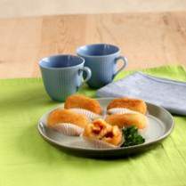 4. Ambil sedikit campuran singkong. Beri isi. Letakkan keju. Bentuk lonjong pipih.