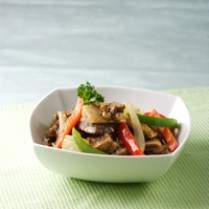 - Tumis bawang bombay sampai harum. Masukkan iga sapi, paprika merah, paprika hijau, dan nanas. Aduk sampai layu.