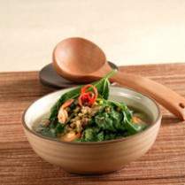 - Tambahkan daun katuk dan daun labu. Adil rata. Masak sampai matang.