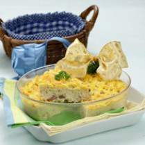1. Aduk rata makaroni, daging giling, daging asap, ayam giling, bawang bombay, garam, merica bubuk, pala bubuk, gula pasir, telur, keju parut, susu cair, dan krim kental.